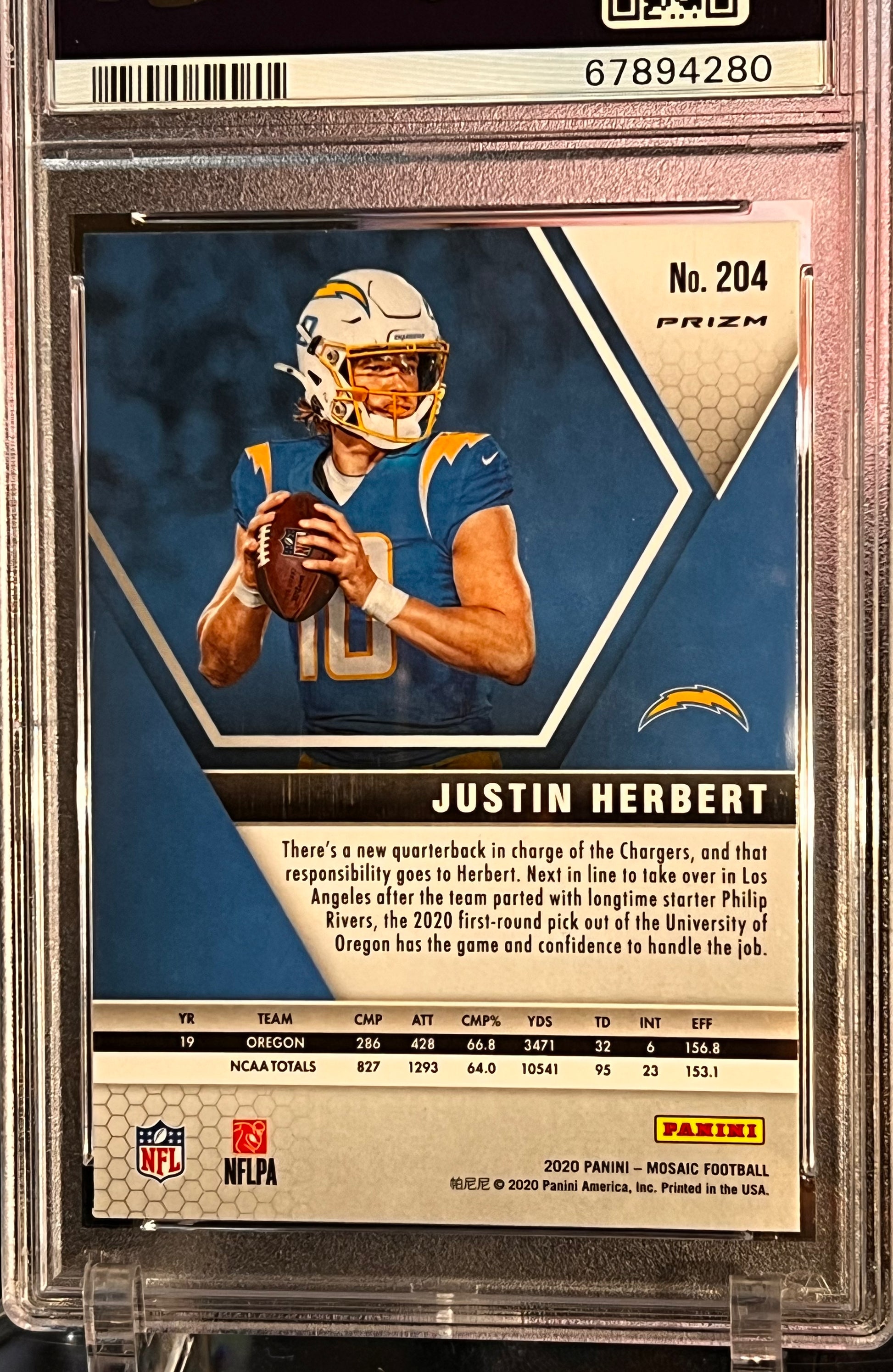 ⚡ 2020 Panini Mosaic #204 Justin Herbert – Red Mosaic | PSA 9 MINT ⚡ 🏷️ Cert #67894280 | Rookie Year Parallel | PSA Slabbed