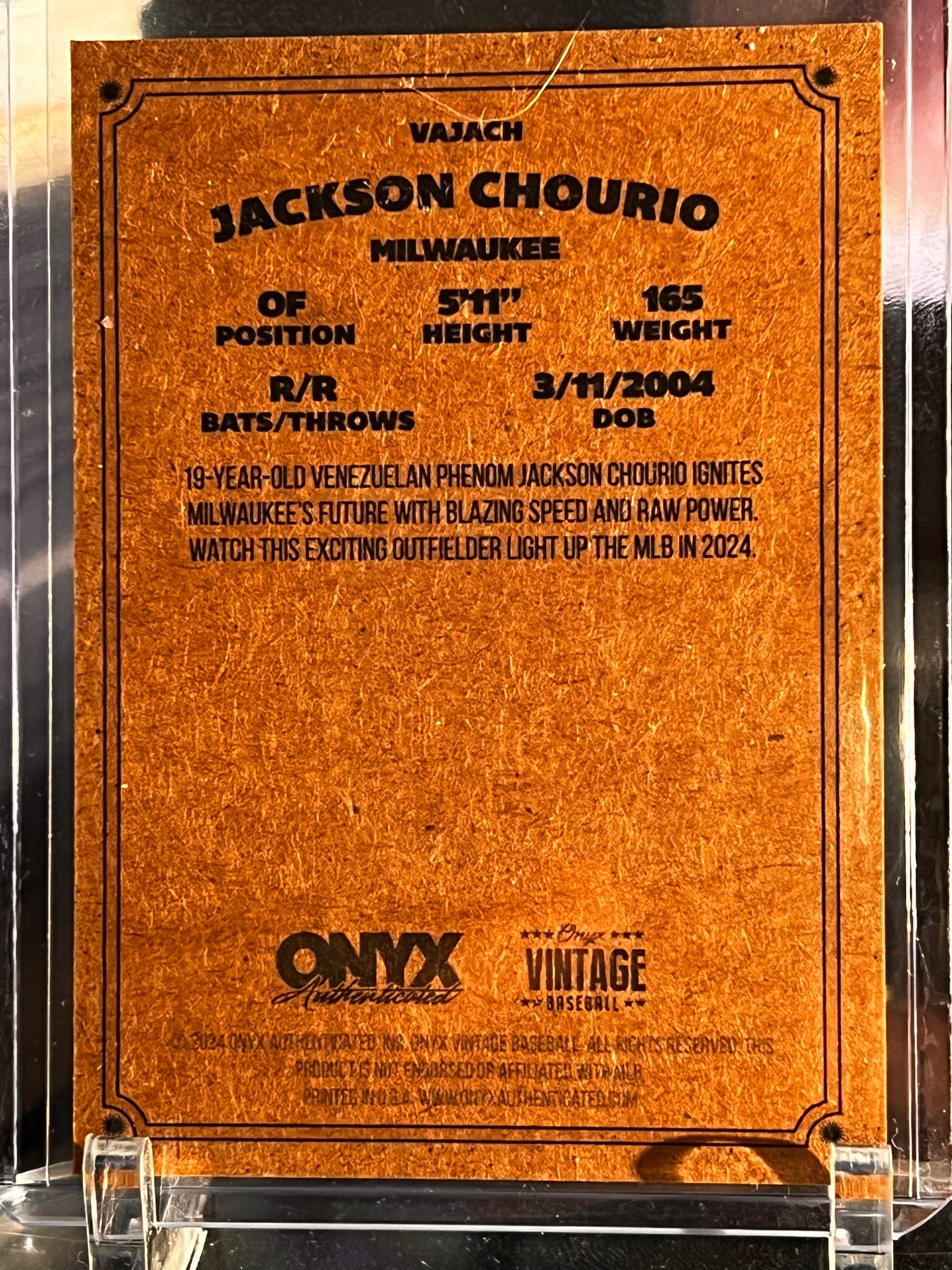 ⚾ 2024 Onyx Vintage – Jackson Chourio Rookie Autograph Milwaukee Brewers | RC Auto | On-Card Signature