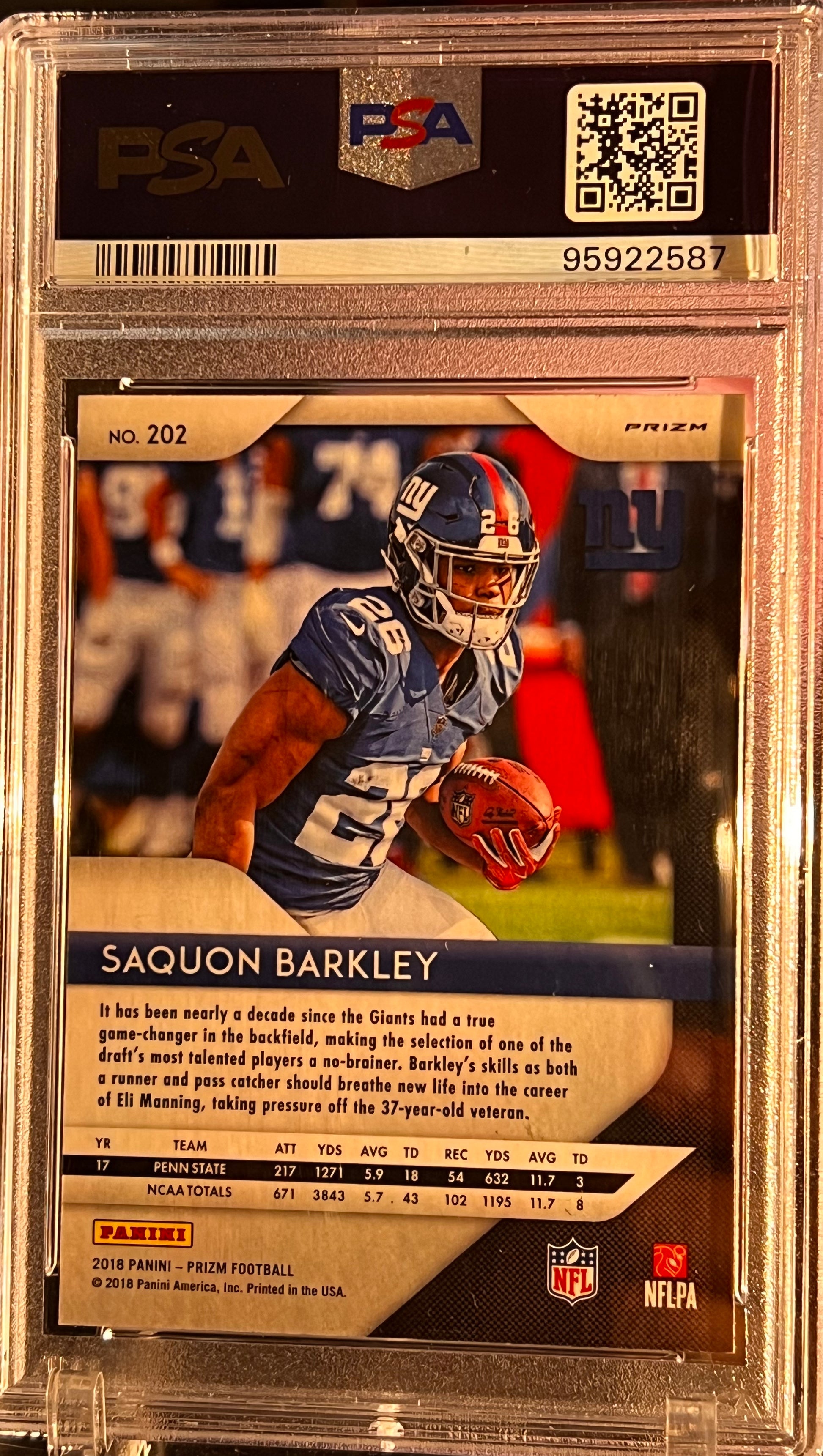 π 2018 Panini Prizm Saquon Barkley β Disco Prizm #202 β PSA 10 GEM MINT RC π Cert #95922587 | PSA 10 | SB Champ β Philadelphia Eagles